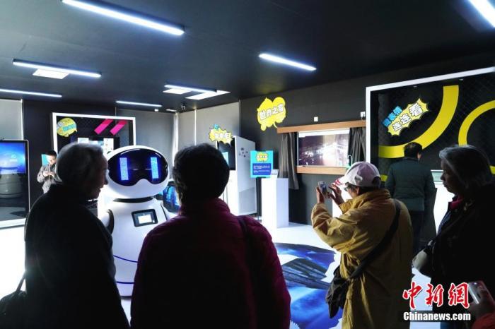 資料圖:2018年11月7日,在北京海淀公園,市民在“未來空間”科技展廳內與機器人互動。