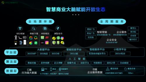在智慧升級的時代背景下,360集團已經形成了“3+1”業務佈局,全面迎接產業互聯網。隨着互聯網對企業的影響逐漸從營銷單個環節轉向營銷、渠道、產品運營的全價值鏈的再造,2019年12月2日,360商業化也完成了品牌煥新,升級為“360智慧商業”。