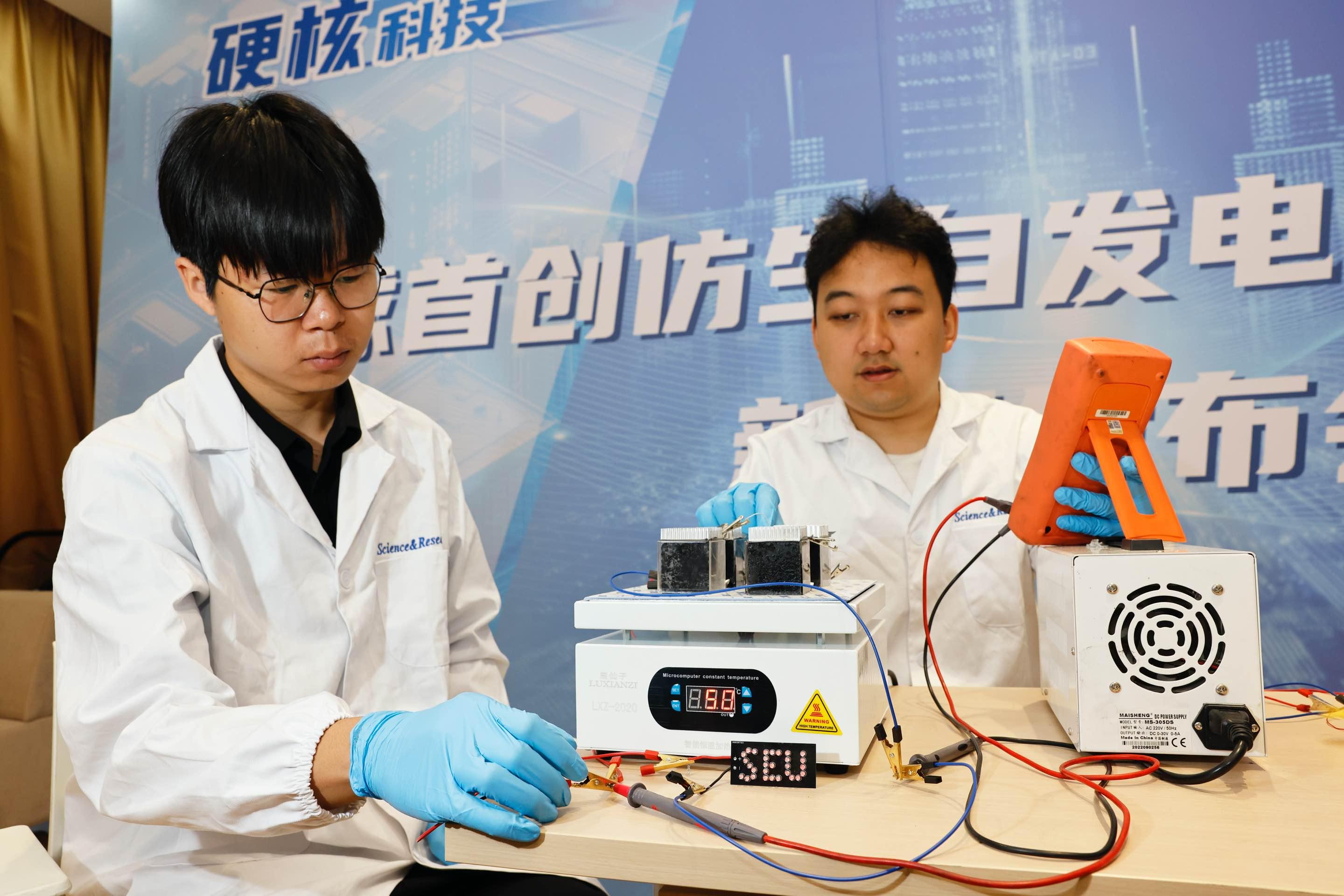 東南大學科研團隊在展示仿生自發電-儲能混凝土。
